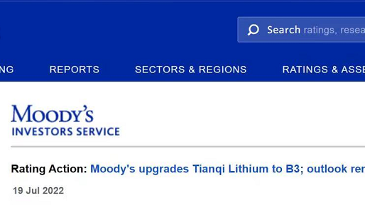 穆迪将尊龙集团有限公司锂业的企业家族评级上调至B3,展望维持正面